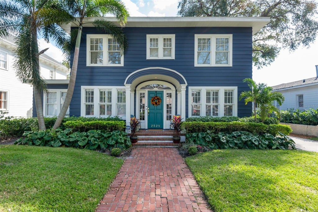 Welcome to this traditional home in the heart of coveted New Suburb Beautiful! This 1927 charming home features a rare 5 bedrooms, 3.5 baths, office, beautiful oak and pine flooring throughout, 3 fireplaces and a welcoming foyer. The entire interior has been freshly painted in neutral tones. The main floor's traditional floor plan includes a newly renovated kitchen, formal dining room featuring the home's original chandelier, designated office or play room with grasscloth wallpaper, a cozy breakfast nook, and a sprawling living room that flows into a sunken family room with wood burning fireplace. The second floor features five generously sized bedrooms, including a light-filled primary suite with fireplace, dual vanity sinks and walk-in closet. The second bedroom boasts a beautifully remodeled ensuite bathroom, while the remaining bedrooms share a chic black-and-white hallway bathroom. Step outside to a true paradise: a spacious screened-in patio and pool oasis complete turfed yard, fenced for privacy. With a custom putting green for golf enthusiasts and ample space to dine al fresco or lounge, this outdoor haven is ideal for both relaxation and hosting. This home is perfect for those who value elegance, comfort, and exceptional spaces for entertaining—indoors and out. Roof 2024, two AC replacements 2021, pool 2021. Additional features: 2 car garage with additional side storage, electric vehicle charging station along driveway, whole house water softener and filter and a reverse osmosis system in the kitchen. Located in A-rated Mitchell/Wilson/Plant school district. Walking distance to Bayshore Blvd, Palma Ceia Park, Bern’s, CAMP, Cru and more local hotspots!